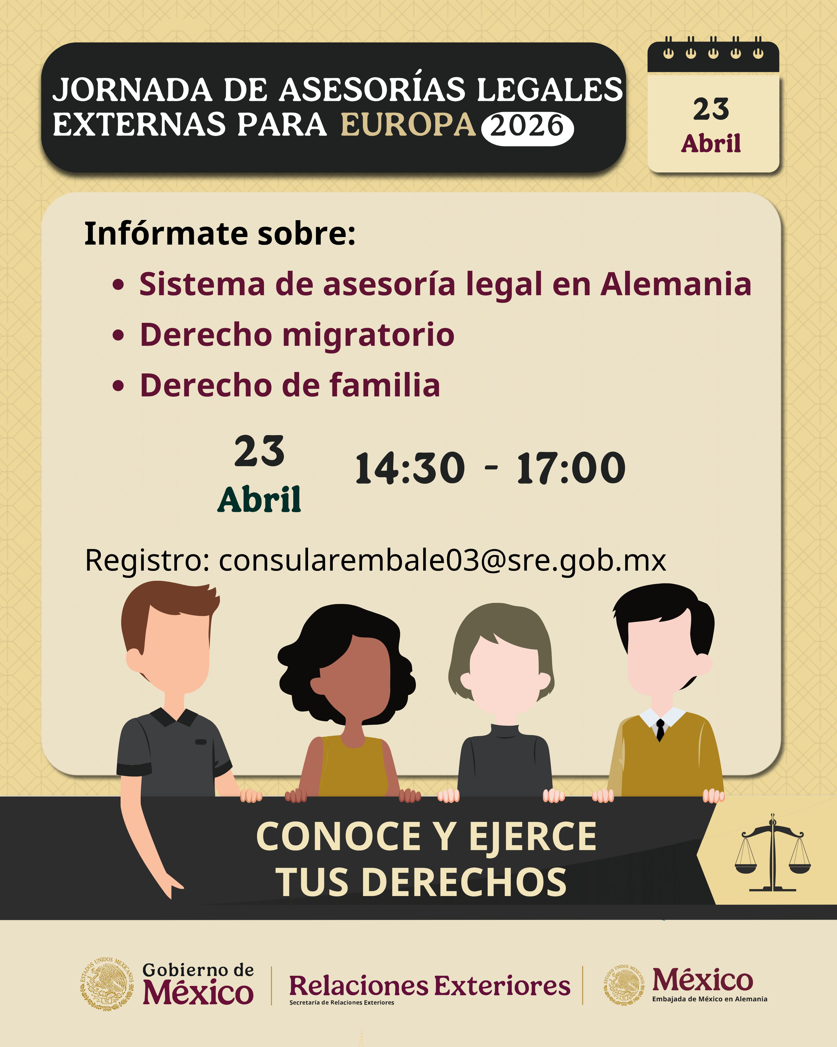 ¿Eres mexicana o mexicano y vives en Alemania? ¡Acompáñanos en esta Jornada de Asesorías Legales Externas para Europa!