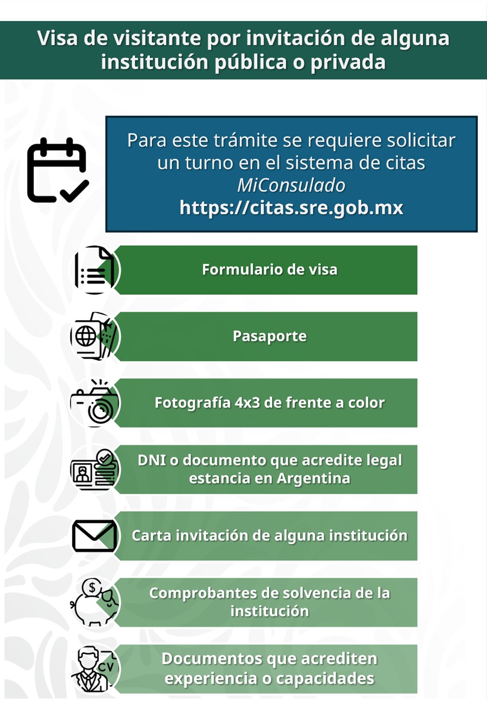 ** Los portadores de pasaporte argentino no requieren visa para ingresar a México en calidad de visitantes por invitación de alguna institución pública o privada sin permiso para realizar actividades remuneradas. **