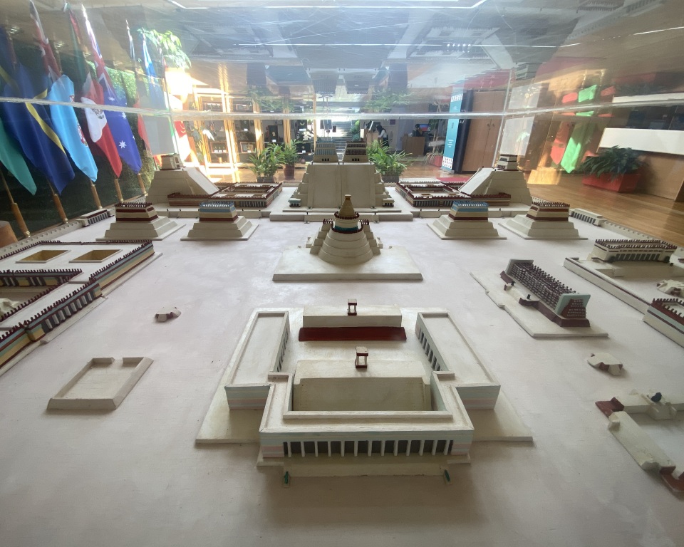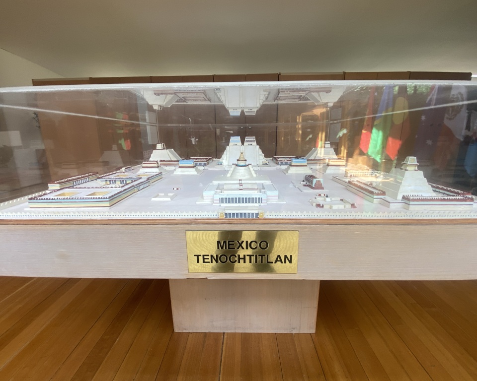 The model before you depicts part of “Tenochtitlan”, the ancient capital of the Aztec Empire. By the 16th century, it housed around 200,000 people, while the wider Mexico basin had nearly one million.