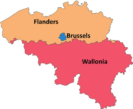 - Comunidad Germanófona: Representa a la minoría de habla alemana situada al este del país (la provincia de Lieja).