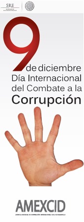 Informase que el gobierno de México como integrante de la Convención para Combatir el Cohecho de servidores Públicos Extranjeros en Transacciones Comerciales Internacionales de la Organización para la Cooperación y el Desarrollo Económicos (OCDE), comunica que el 9 de diciembre se celebrara el Día internacional del Combate a la Corrupción, para mayor información sobre la Convención favor de visitar la pagina de la OCDE: