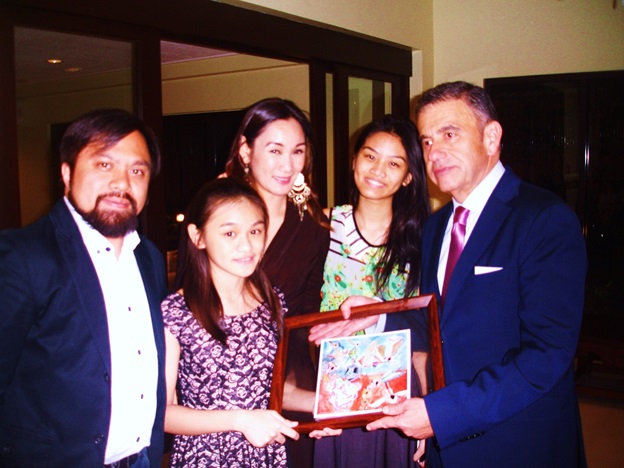 El viernes 24 de enero, en alegre ceremonia en la Residencia Oficial, el Embajador Julio Camarena Villaseñor premió a la ganadora del concurso de dibujo infantil “Este es mi México”, la joven pintora filipina, Martina Ysabelle Pérez, de 10 años de edad. El certamen fue patrocinado por el Instituto de los Mexicanos en el Exterior y tuvo en su 17ª edición el tema “Alas de México, Uniendo Fronteras”. El dibujo ganador consistió en una alusión al tradicional Día de Muertos, y figuró entre los diez ganadores alrededor del mundo, de un total de más de tres mil dibujos. Además de una colección de libros, se hizo entrega de una pintura del maestro Jorge Marín.