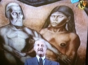 Cortés y amante Malinche, mural de José Clemente Orozco. Al calce, Carlos Fuentes, vástago honorario de la cultura Tenocha.