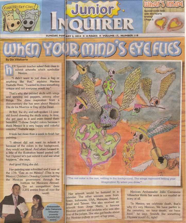 Se publicó en Junior Inquirer el 2 de febrero de 2014 una nota sobre la ganadora del Concurso de Dibujo Infantil “Éste es mi México”.