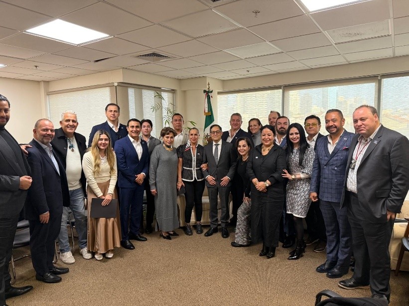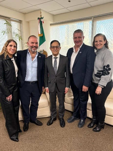 La Embajada de México en Israel acompañó y brindó apoyo a una misión comercial organizada por la Cámara México-Israel de Comercio e Industria, integrada por una delegación de empresarias y empresarios mexicanos. En este marco, se llevó a cabo una reunión de trabajo en la sede de la Embajada, en la que el Embajador de México en Israel, señor Mauricio Escanero, compartió con los participantes un panorama general de la relación México-Israel, con énfasis en el potencial de cooperación económica y de inversiones en apoyo al Plan México.