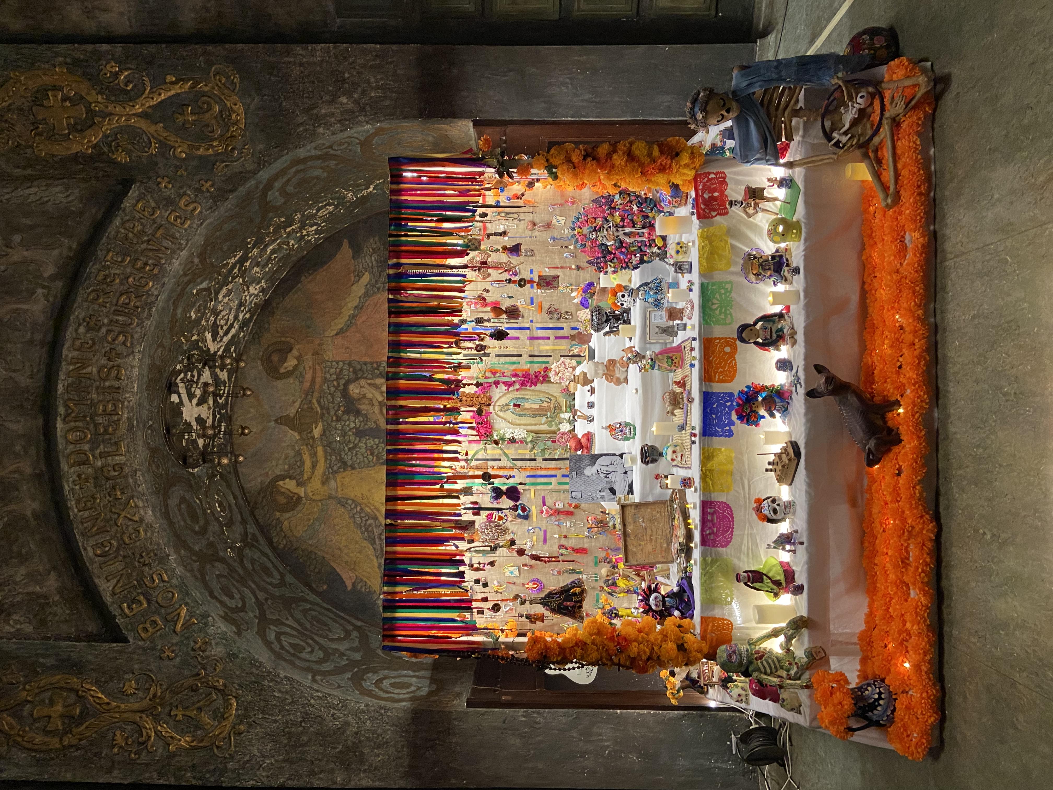 El altar fue diseñado por la artista mexicana residente en Noruega Lucía Díaz del Castillo. Se montó con el apoyo de la Embajada y voluntarios de la comunidad mexicana en el país. La artista intervino la capilla a fin de asegurarse que el altar y los murales que ahí se encuentran lograran una óptima conjunción estética.