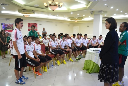 La Embajadora les dio la bienvenida a Panamá y los conminó a dar lo mejor de sí, a fin de mantener en alto el nombre de México. Como se recordará, en el campeonato mundial de 2011 la selección de México Sub-17 se coronó campeona.