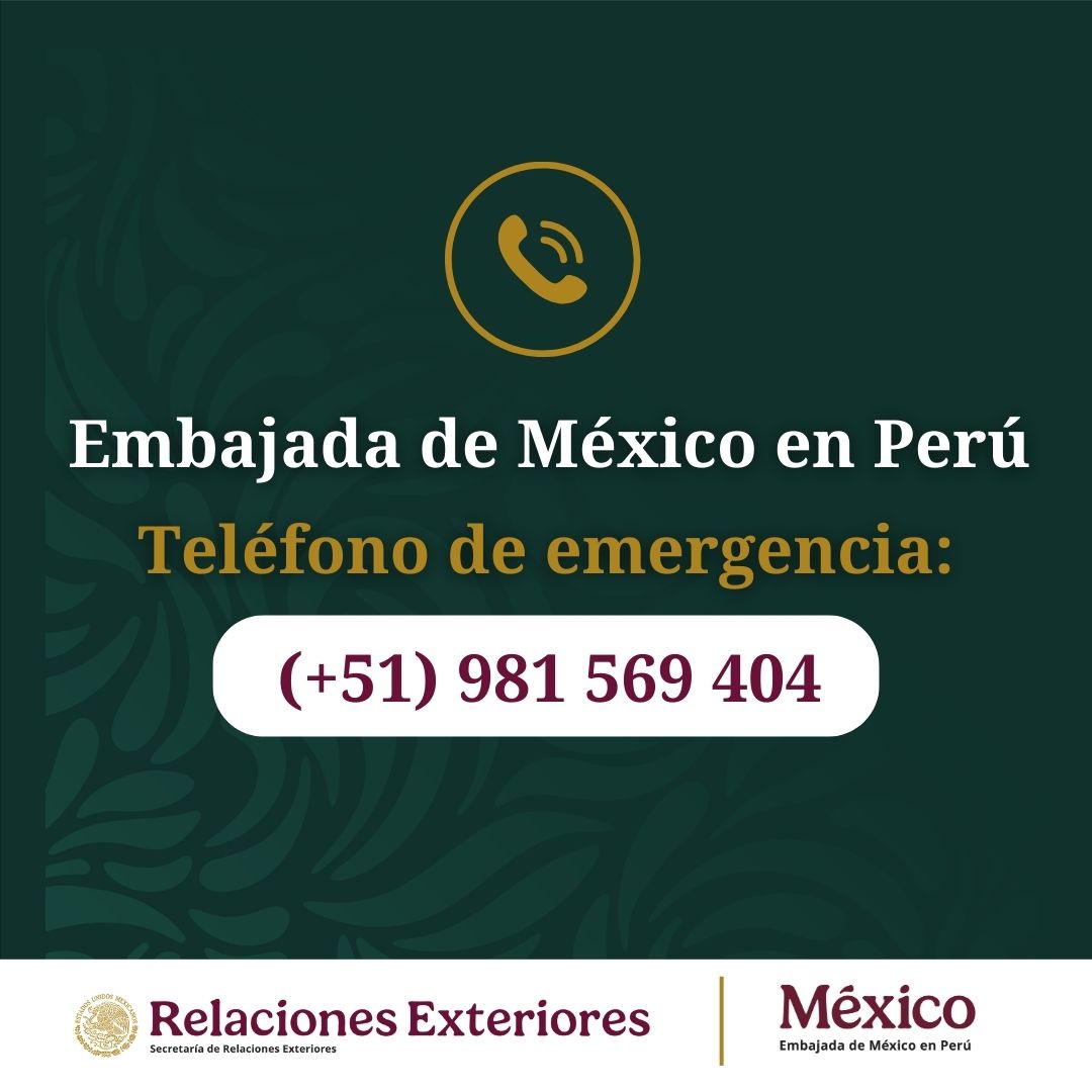 Las personas mexicanas que residan o se encuentren de turismo en el Perú pueden contactar a la