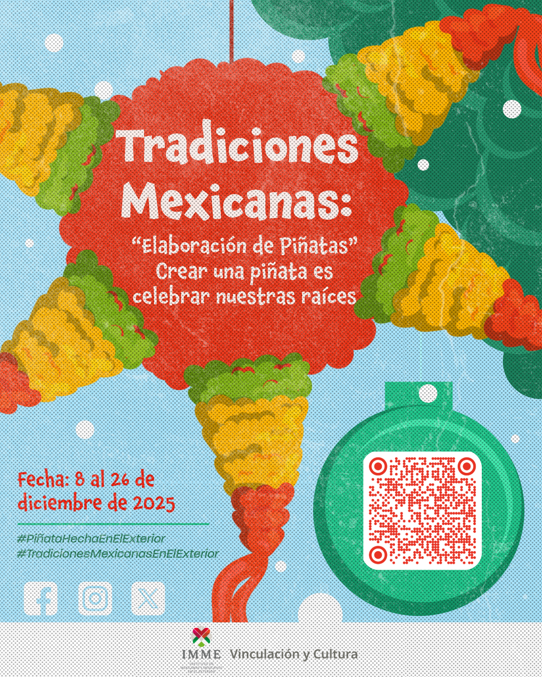 La piñata tiene una historia profundamente arraigada en México. Su origen se remonta a más de 400 años, en el ex convento de San Agustín, en Acolman, Estado de México, donde tomó la forma que actualmente se conoce, con variaciones en colores, figuras y tamaños. Las figuras clásicas incluyen flores, barcos y estrellas; sin embargo, la más tradicional es la estrella de siete picos, cuyos picos representan los pecados capitales, mientras que los dulces y frutas que caen al romperla simbolizan las bendiciones que reciben quienes participan. En las posadas decembrinas, la piñata se llena con dulces, cacahuates y frutas de temporada como cañas, jícamas, mandarinas, tejocotes y naranjas. Antes de romperla, solía entonarse el verso tradicional: Independientemente del simbolismo atribuido a la piñata, su elaboración y ruptura continúan representando creatividad, identidad y orgullo comunitario. Tutorial para la elaboración de piñata El IMME pone a disposición de las comunidades el video tutorial proporcionado por el Museo de Arte Popular: |
