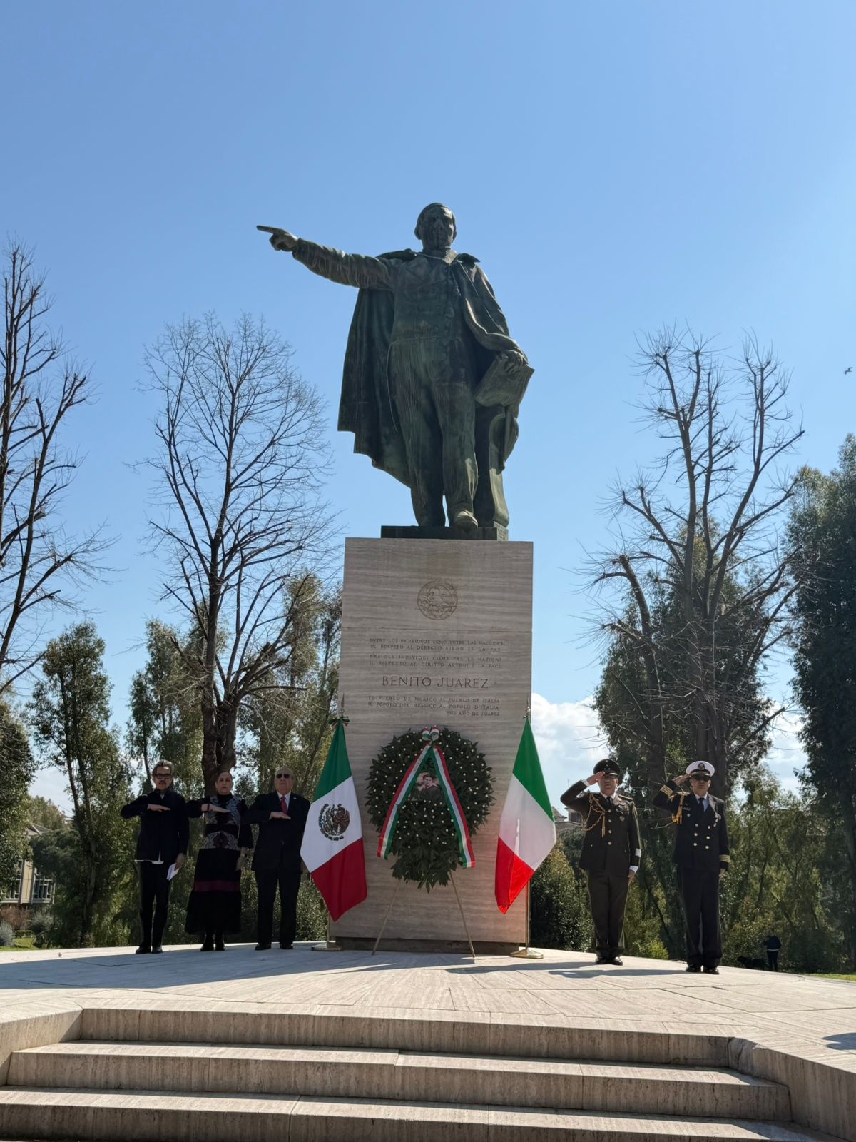 Las tres misiones diplomáticas de México en Roma realizaron la ceremonia por el 220 aniversario del natalicio de Benito Juárez y la conmemoración especial de la vida y la obra de Margarita Maza.